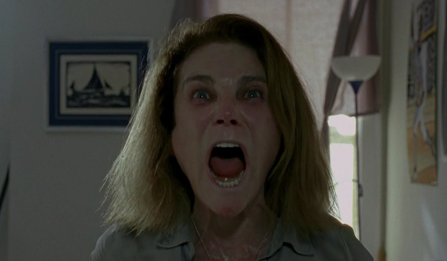 After Rick and the others have left the house by blending into the herd using the scent of the walkers they had killed, Deanna is about to kill herself when she hears the walkers outside the hallway and decides to open the door and open fire, killing some of the walkers as they begin to come close to her and letting out one last defiant yell at them before she subsequently dies off-screen.