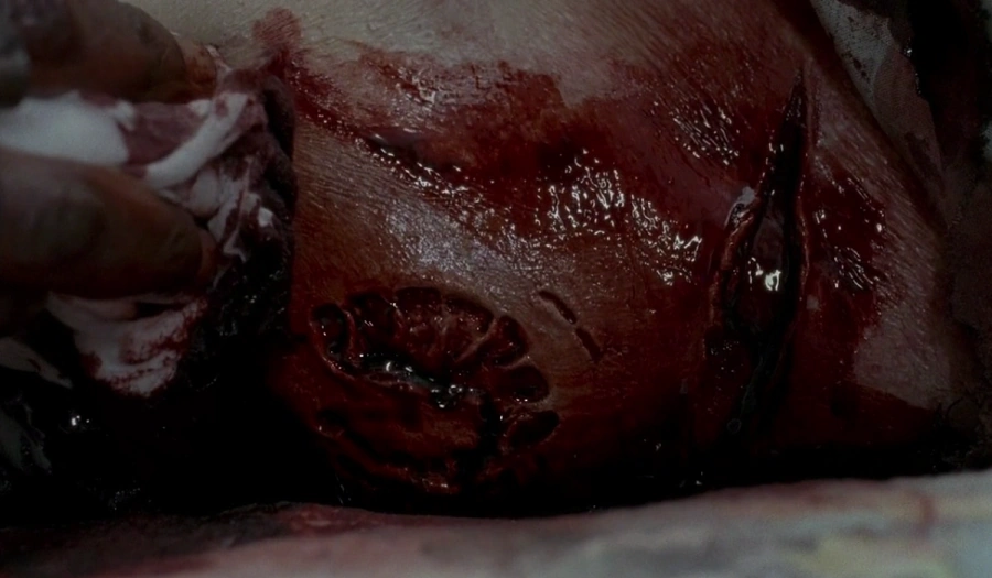 She is then put on one of the couches upstairs, where Michonne tends to her injury. When Rick asks her afterwards if she is okay, Michonne finds a bite mark on her side.