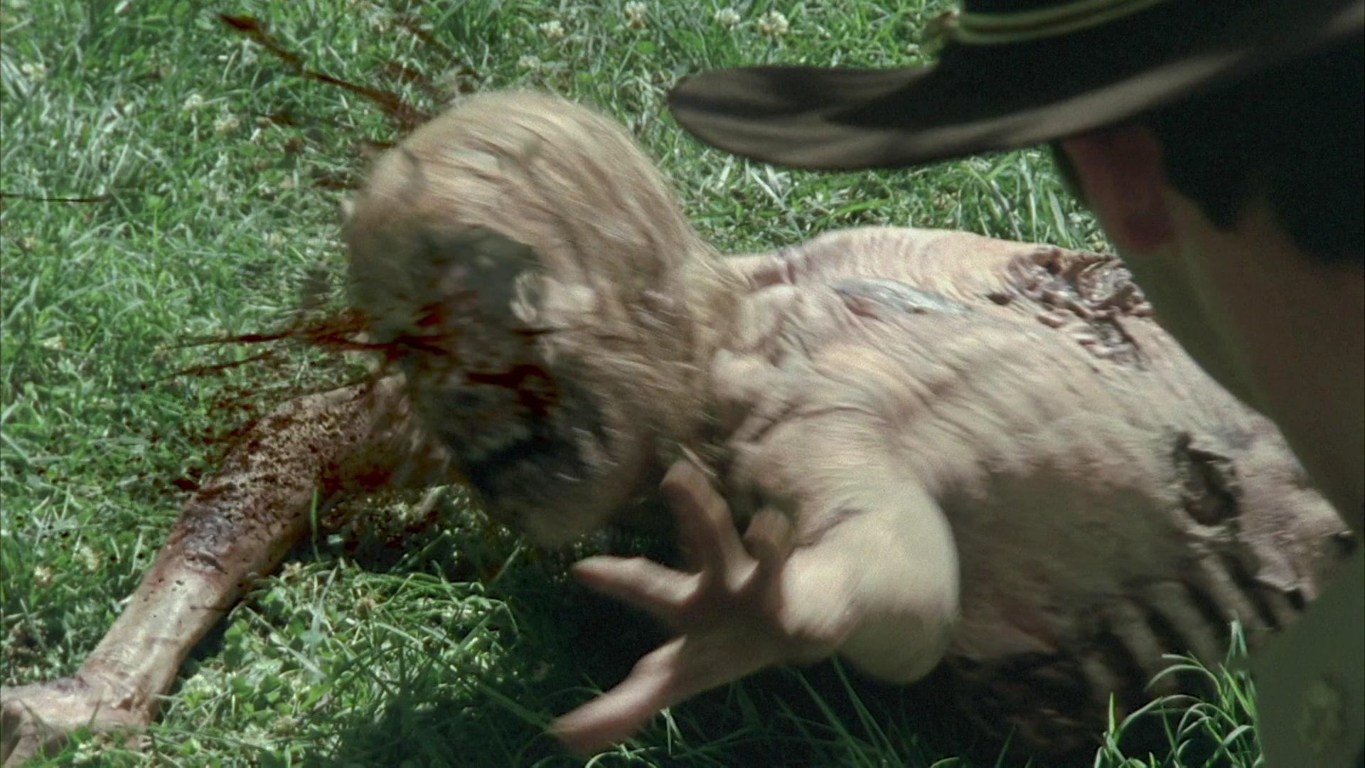 Two months later, she crawls her way to somewhere in the surrounding area of Rick's hospital, where she encounters Rick on two separate occasions. During the second encounter, he tearfully expresses his sympathy for her and shoots her in the head with his revolver.